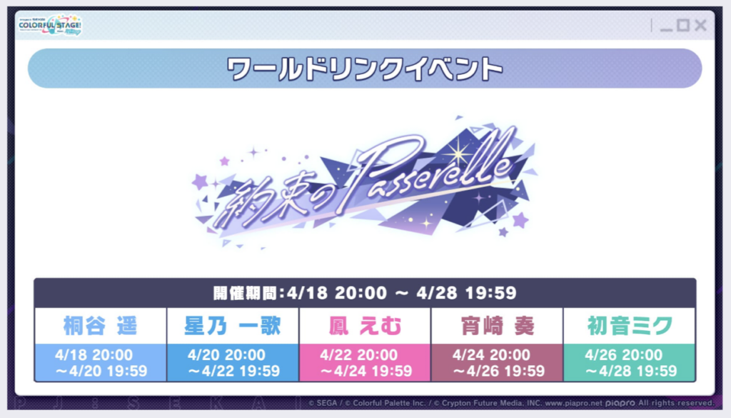 4月はワンダーランズ×ショウタイム推しのかたが大変な月になりそうだなと感じました。コラボの復刻もありますからね…。