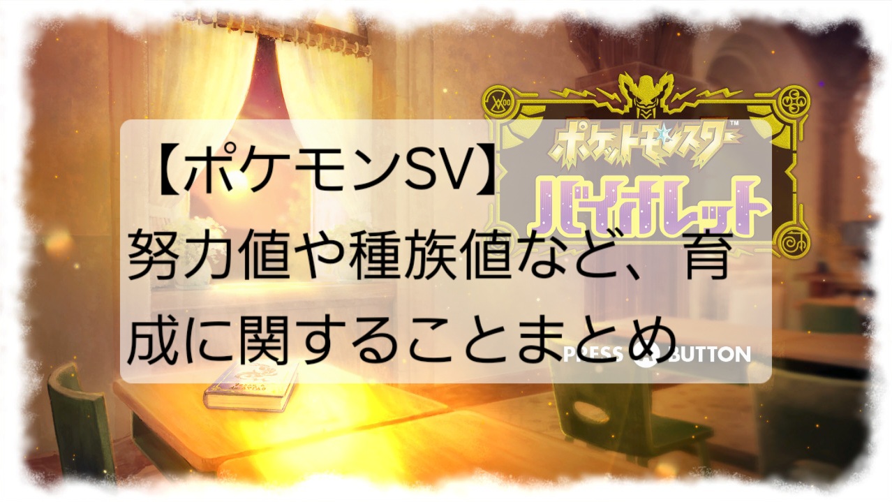 ポケモンSVの育成に関すること(努力値、種族値)をまとめたページです。お役に立ちましたら幸いです。
